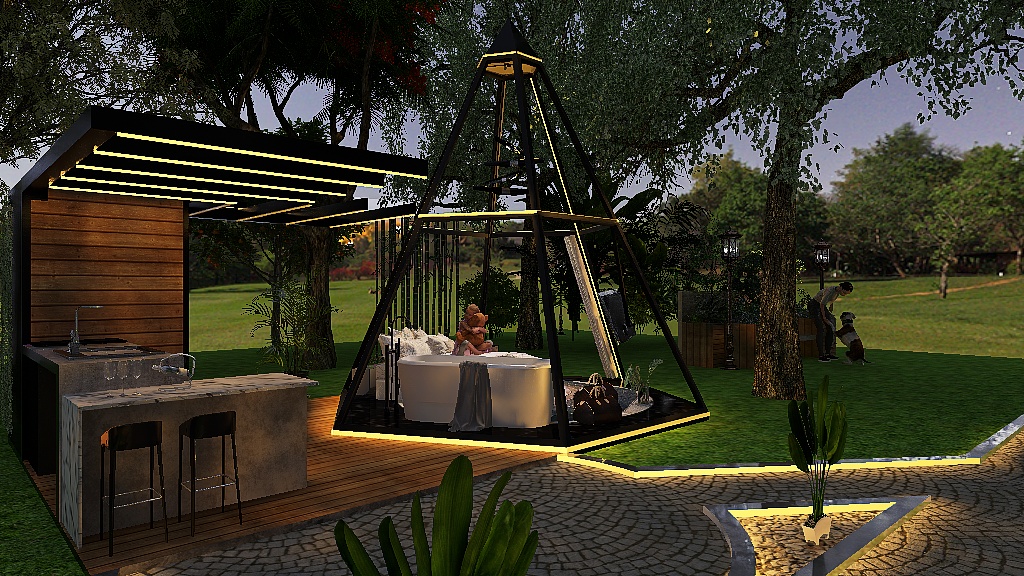 nesse projeto serão implantadas ao total 10 cabanas e 7 Glampings Tiny House mais 01 Churrasqueira"Pergola Coletiva"